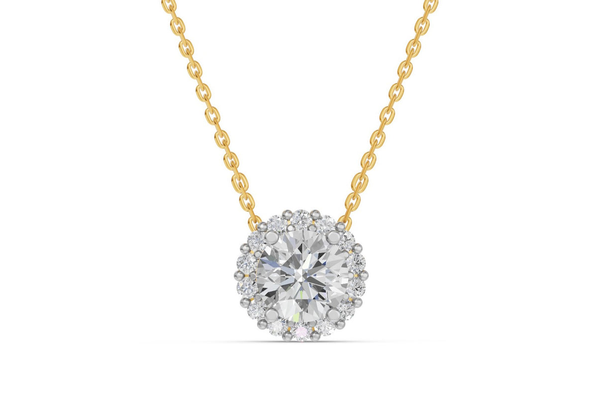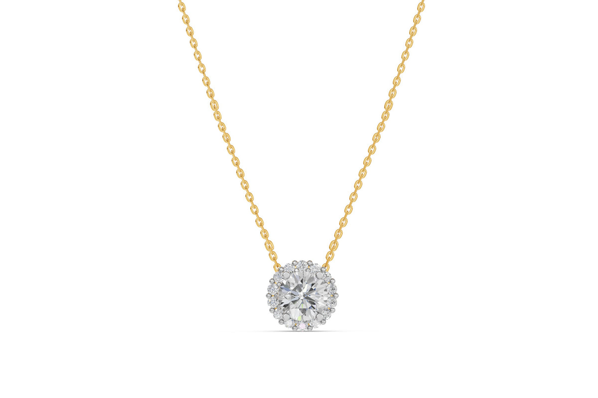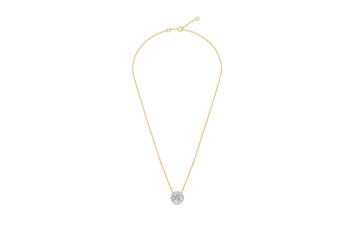 Halo collier · Rond · 1.8 ct · 14k Geelgoud