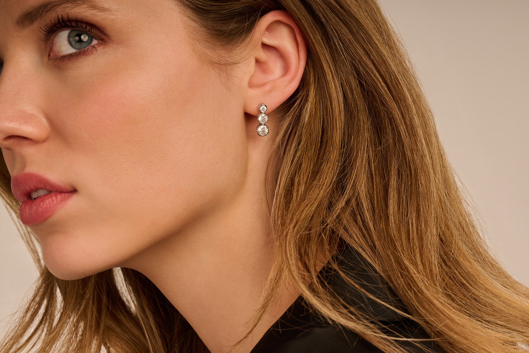 Bezel trio oorbellen· 2.5 ct · 14k Witgoud