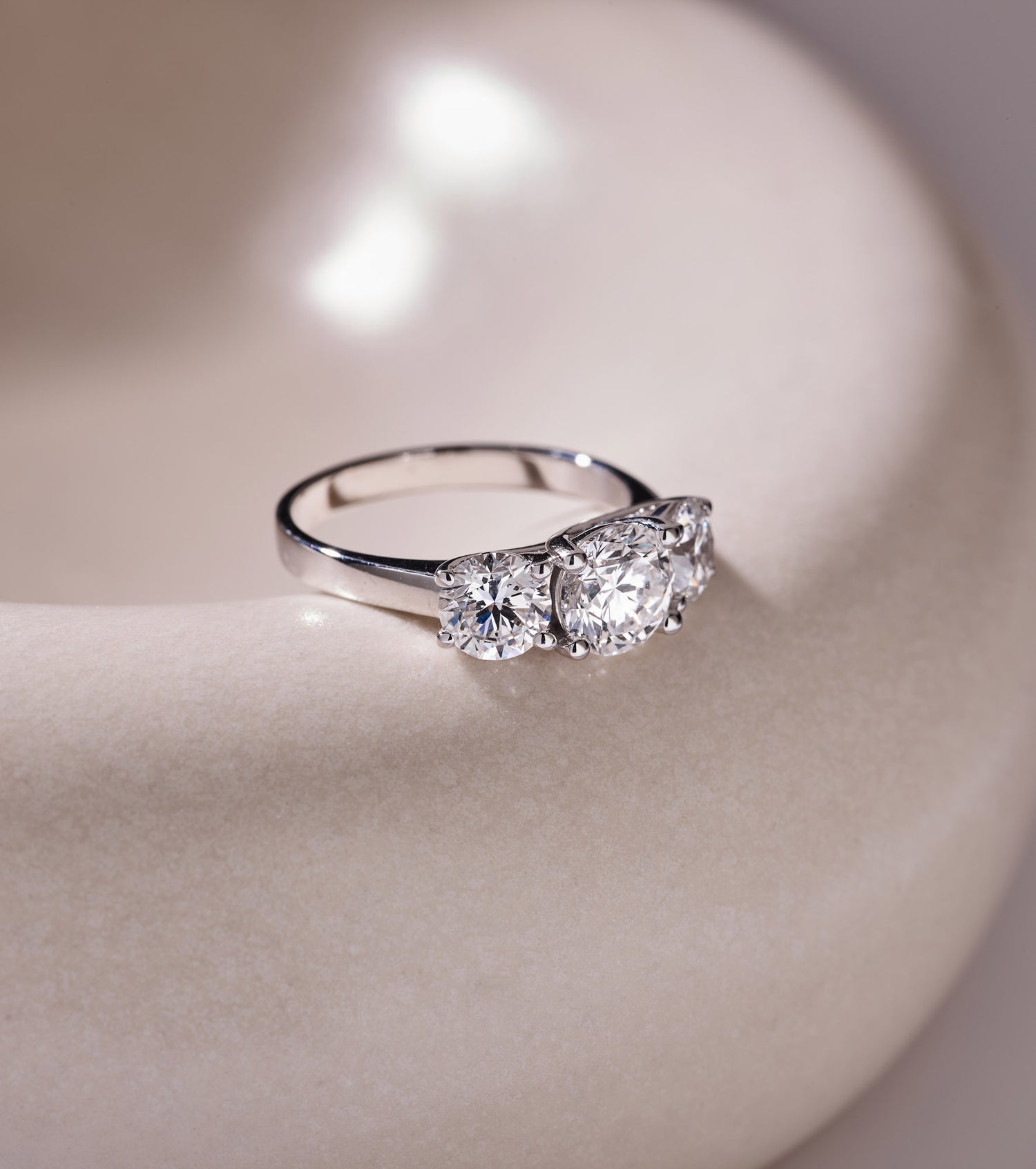 Deze trilogie ring is vervaardigd in warm 14k geelgoud en gezet met drie lab-grown diamanten. De centrale steen van 1.0 ct vormt het stralende middelpunt, geflankeerd door twee diamanten van elk circa 0.5 ct. Samen creëren ze een harmonieus geheel dat symbool staat voor verleden, heden en toekomst. Tijdloos, elegant en bewust gekozen. Zorgvuldig vervaardigd om elke dag te dragen en momenten blijvend te markeren.