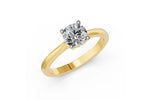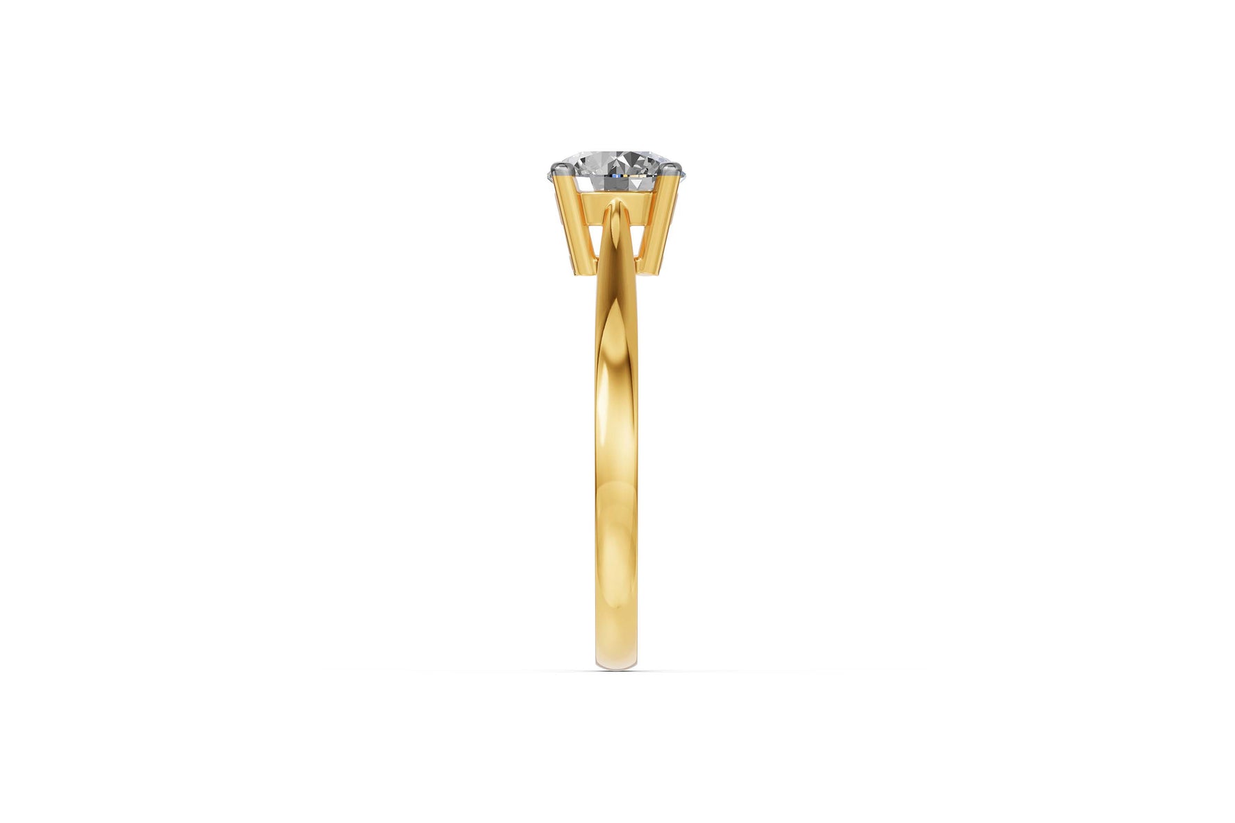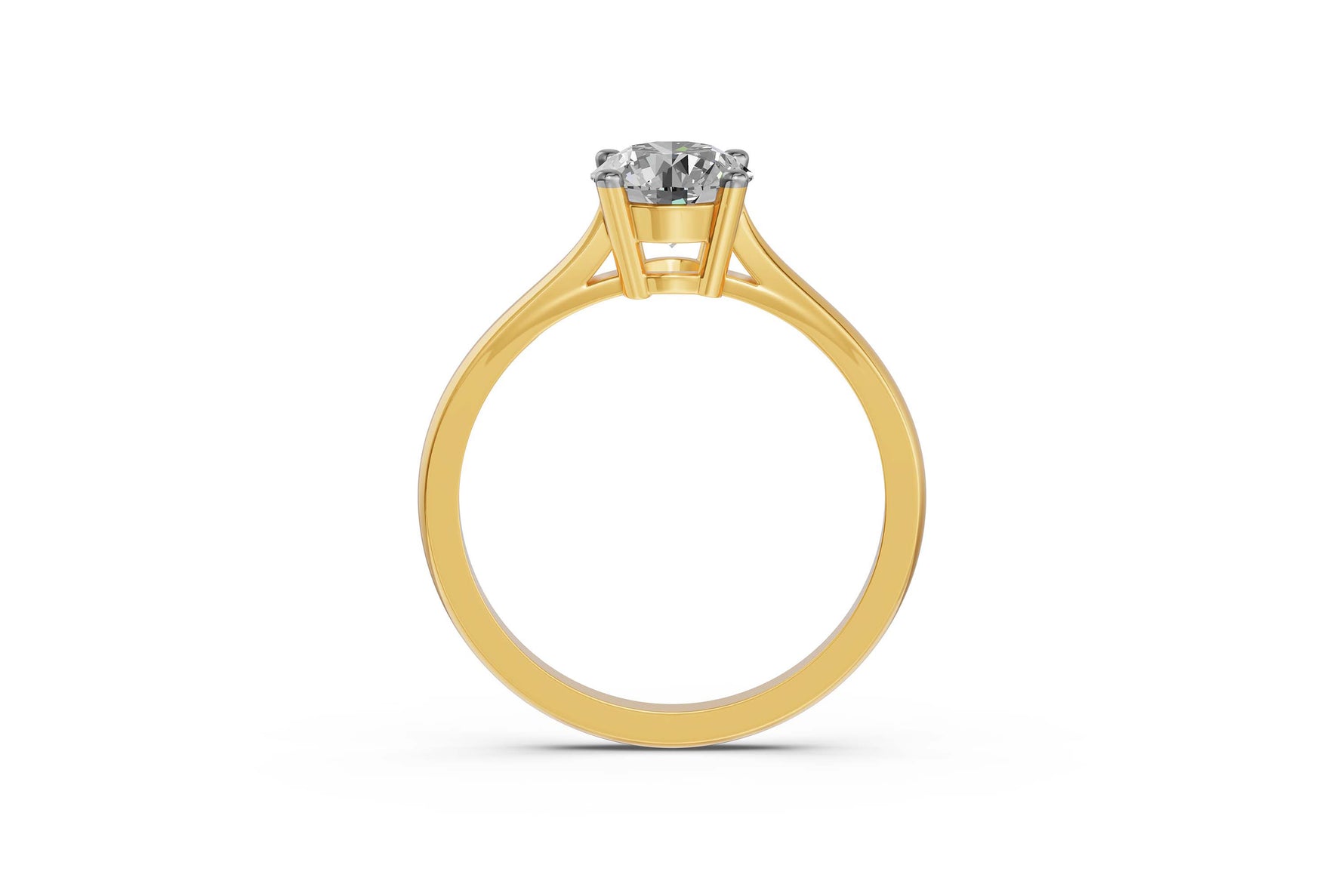 Geelgoud geeft deze ring een warme, klassieke uitstraling die prachtig contrasteert met de helderheid van de diamant.