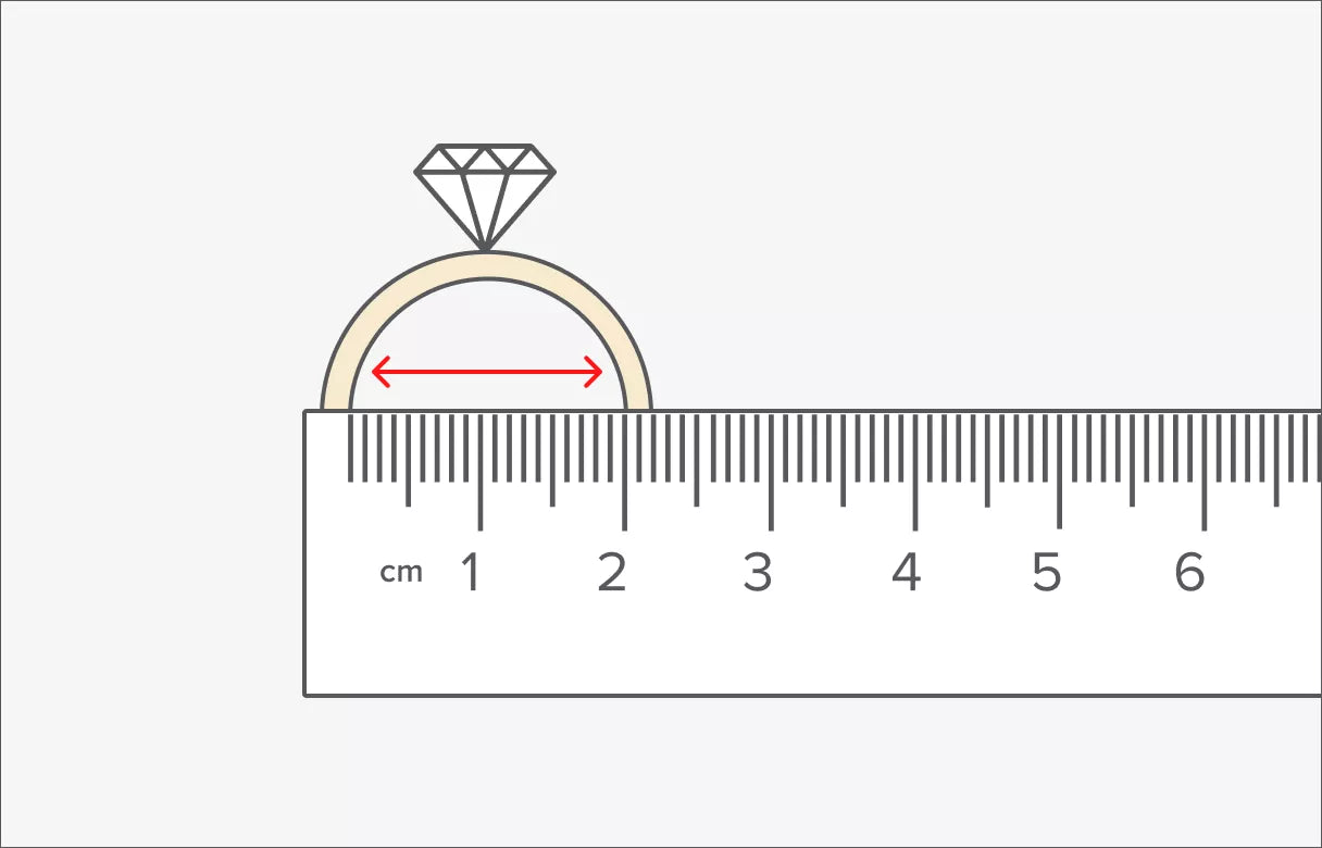 Pak een ring die perfect past. Leg hem op een liniaal en meet de binnenste diameter in millimeters.