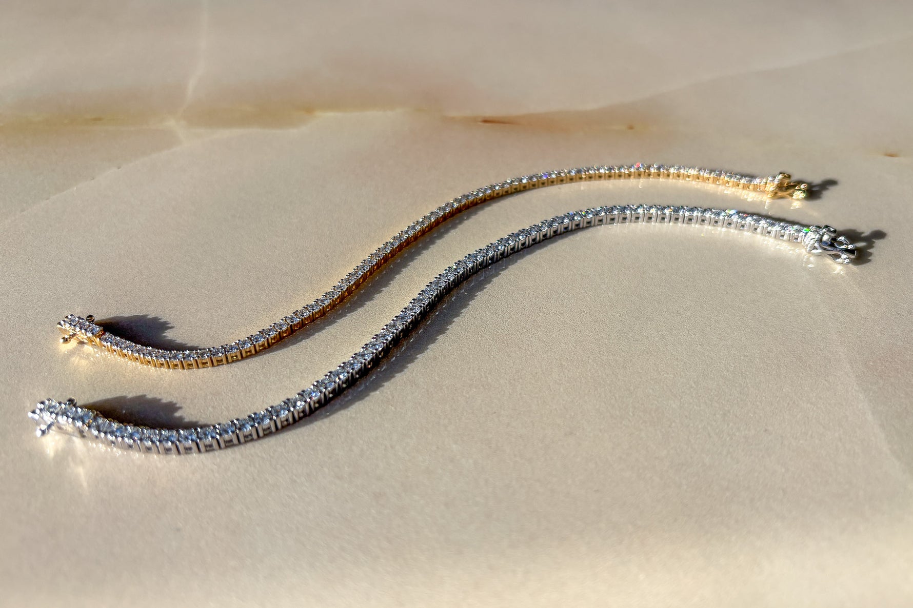 Een subtiele tennisarmband met dezelfde iconische uitstraling. De sprankelende diamanten vormen een verfijnde lijn op 14k geelgoud, waardoor een elegante, warme schittering ontstaat. Ideaal voor dagelijks gebruik én bijzondere momenten. Een bewuste keuze voor luxe die dichtbij jezelf blijft en moeiteloos te combineren is.